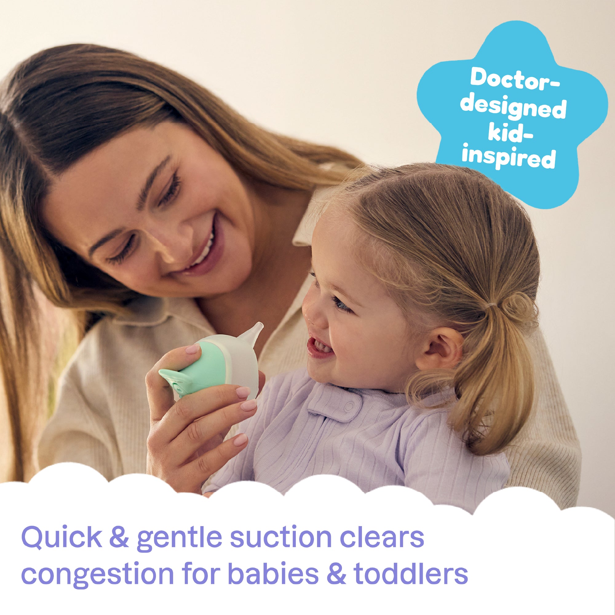 - Gentle suction to relieve congestion in babies, infants, and toddlers