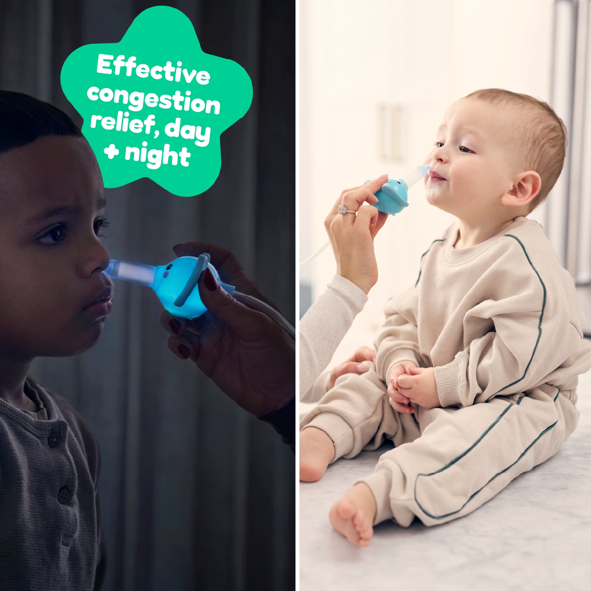 This bundle gives parents the must-have tools for helping ease baby & toddler congestion and delivering medicine with less stress. This bundle includes Luna the Elephant’s Light-Up Nasal Aspirator, Noa the Narwhal’s Light-Up Nasal Bulb, and Riley the Rocket’s Medicine Dispenser. Designed by pediatric experts to support babies and toddlers 0M+, this set helps you clear stuffy noses, give accurate doses, and bring calm to tough moments—day or night.